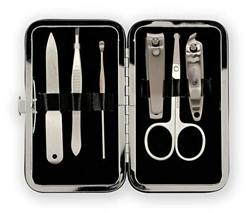 - Padded carrying case is 3 x 5-inches; includes 6 stainless steel manicure tools
