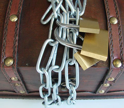 Sie erhalten als Komplettset: 1 Geldtruhe im Antiklook (B 22 x T 15 x H 11,5 cm) +++ 1 Kette (1,70 m) +++ 3 Vorhangeschlosser (25/30/40 mm). Einfach Bargeld reinlegen, Ketten herum und abschliessen - und das Spiel kann beginnen!
