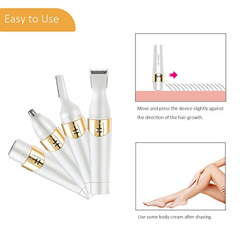 4 in 1 Hair Remover Kit: Money saver. No need to buy body shaver, nose hair trimmer, eyebrow hair trimmer, facial hair remover separately. Now this set will meet all your needs! A Must Have For Traveling: This multi functional Miracu 4 in 1 Electric Shaver Set has mini size, great for carrying around when traveling. Ideal Choice to Buy as a Gift: It has elegant appearance, and made of high quality ABS material. It is an ideal choice to buy as a gift.