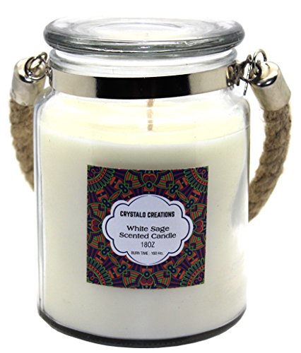 Crystalo Creations White Sage Scented Candle with Rope Handle, 18 Ounce