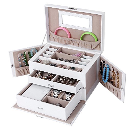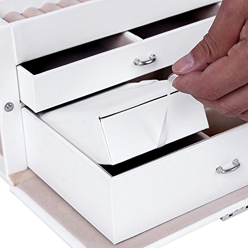 - TOP-NOTCH CRAFT: Made of quality white faux leather and soft beige velvet, this jewelry box is superexcellent to protect your beloved jewelry from scratch and damage