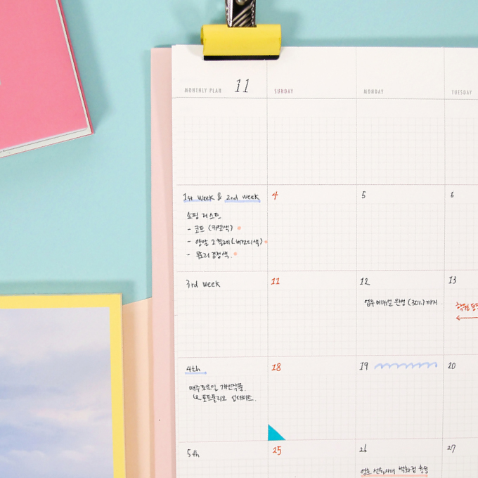 | | 월별로 중간마다 위치 | | 연간계획, 월간계획, 주간계획, 유선노트, 프리노트, 개인정보기록 |