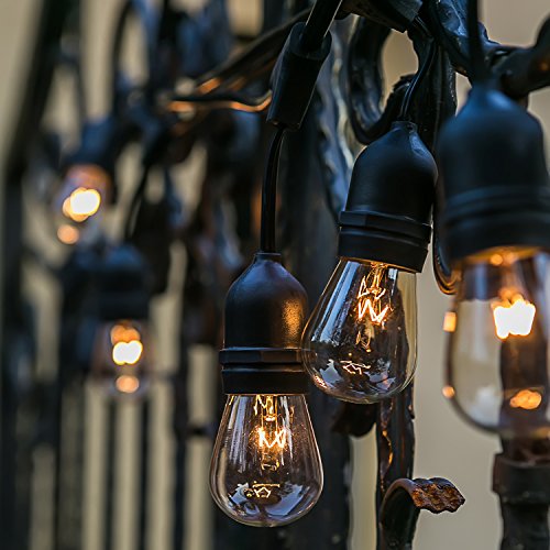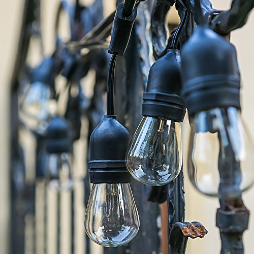 Generalight Advanced Weatherproof Technology-Indoor/Outdoor String Lights-Street & Area Commercial Grade Lighting-24 Feet-8 S14 Style Incandescent Blubs-Heavy Duty-Black-UL Listed