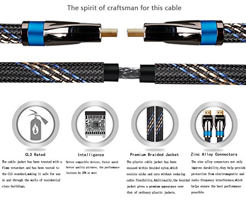 FARSTRIDER HDMI cable 2.0 Version Super High Quality with 3D Technology and Audio return(ARC)/CAT-2 HDMI Cable(Full 1080p/2160p approved),Full Ultra HD 4k support - 2160p (4096 X 2160 pixels),extended colour spaces such as xv Colour and Deep Colour.Supports 720p, 1080i,1080p and 2160p also Supports 4K x 2K Video and more color spare,Supports 54-Bit Deep Color for a Crispy Image.Supports True HD Dolby 7.1 and DTS-HD Master Audio,Support for all television with 1000Hz rates and above.