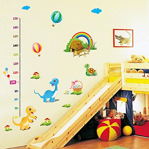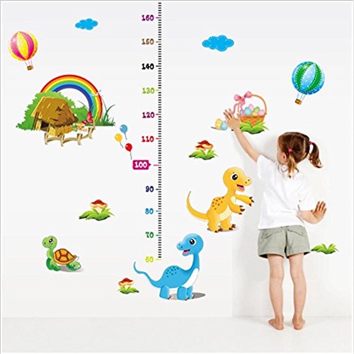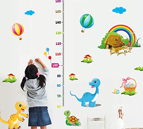 BIBITIME Height Measurement(lowest 60cm) Kids Growth Chart Wall Sticker Rainbow Cottages Turtle Hot Air Balloon Decals for Nursery Playroom Children Room Decor