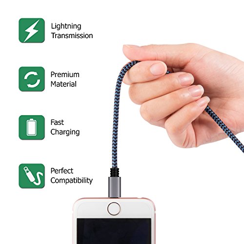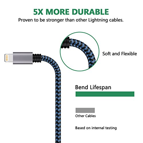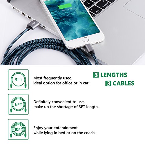Cablex iPhone Charger, 3Pack 3FT 6FT 10FT Lightning Cable Nylon Braided 8 Pin USB Cord Compatible with iPhone 7 7 Plus 6 6s 6 plus 6s plus, iPhone 5 5s 5c, iPad, iPod and More(Blue)