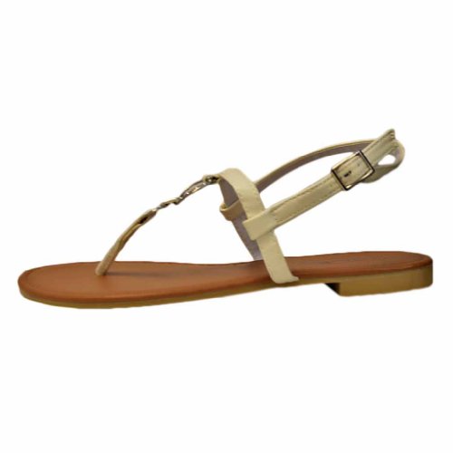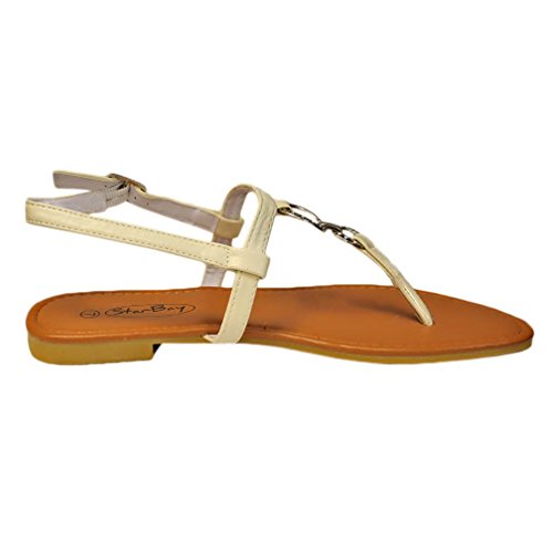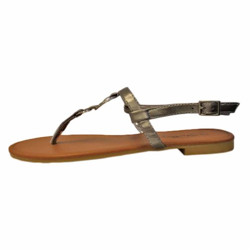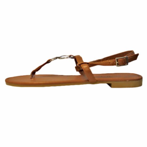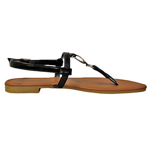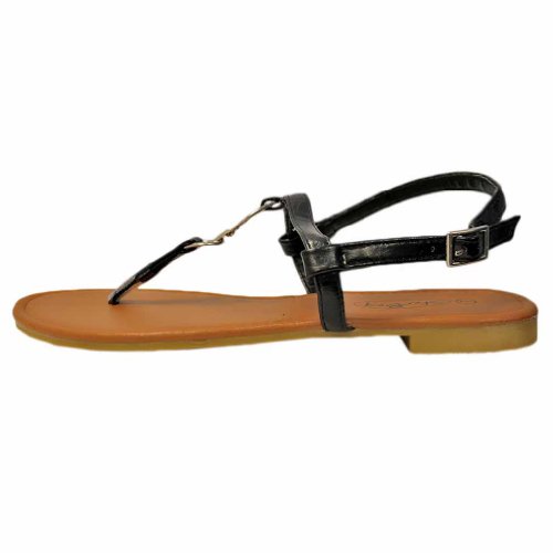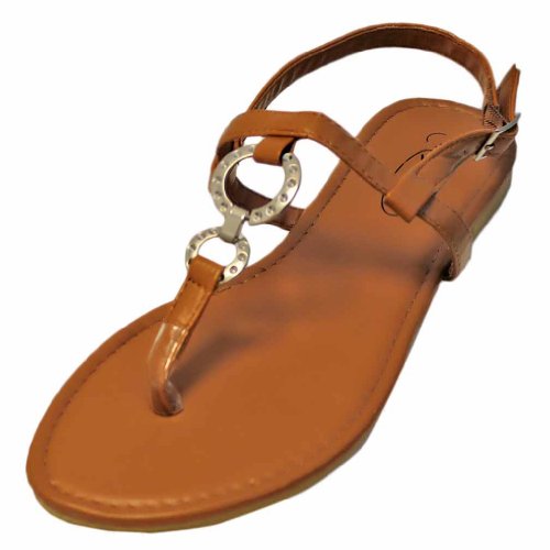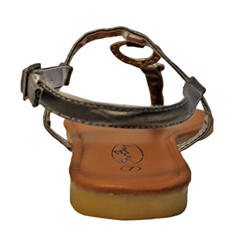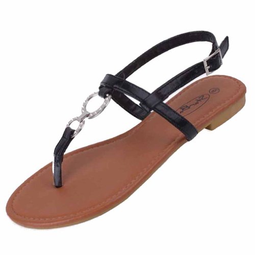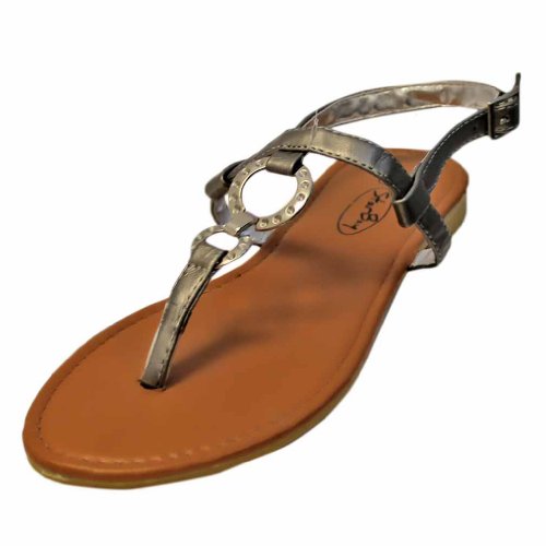 Studio : Star Bay Publisher : Star Bay Binding : Apparel Product Description Providing simple and effortless design, these comfortable sandal flats feature two fashionable silver metal "O" shaped rings. The rings connect the thong strap with the top ankle strap. Silver tone metal adjustable buckle. Adjustable Ankle Strap for Easy On Off Smooth Padded Foot bed Superior Comfort