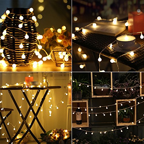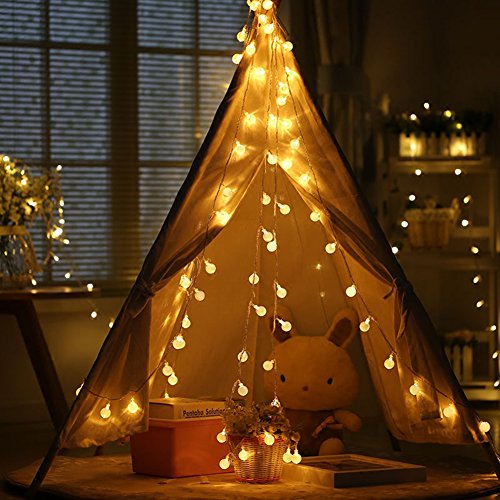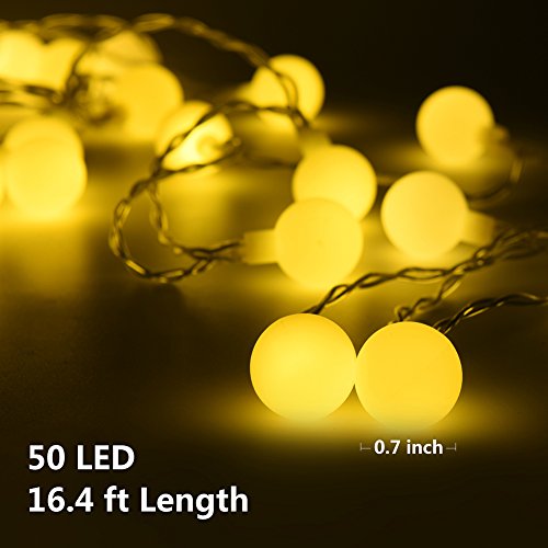 - 【16ft 50 LED Warm White Globe String Light】--Indoor Fairy Lights, 16ft led string lights+ 6ft extension cords, 50 led white globe, decorative string lights for bedroom, dorm, room, wall, bars, deck, cafe, home depot, princess tents, wedding led christmas tree lights decorations led icicle christmas lights