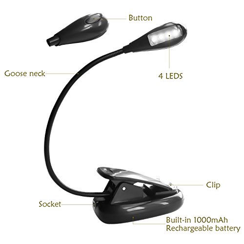 - Super Bright LED Book Light - Consists of 4 SMD LED bulbs, ultra-bright LED light provides a clear, bright spotlight for reading in the dark, enjoying hobbies, camping, or using a keyboard.
