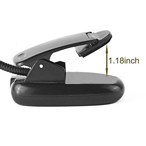 - Multi-purpose Clip-on Lamp- This book reading light has clip,stable base and an extra sturdy padded clip, allowing the light to stand on its own, as well as attach to a table, bed , cupboard, or computer, shelves, computers, laptops, pianos, music stands and sketchpad.