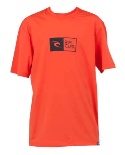 Rip Curl Youth Ripawatu Short Sleeve Rash Guard Surf Shirt, 4, Red
