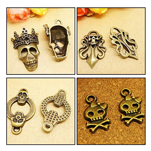 YGDZ Wholesale 100 Gram Antique Bronze Mixed Charms Skull Head Pendants DIY for Bracelet Necklace Jewelry Making and Crafting by FBA