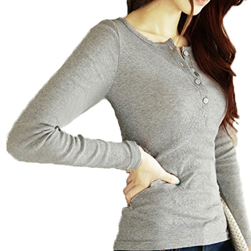 -. Feature : 薄手で着回ししやすい美シルエットな長袖カットソー / 胸元のボタンを留め具合でちょっぴりセクシーな雰囲気に / スカート・パンツとボトムスを選ばないベーシックなアイテム / コーディネイト次第でオフタイム・通勤・通学と使い方色々 / 春・夏はトップスとして秋・冬はインナーとしても着用できて、オールシーズン着まわせます。