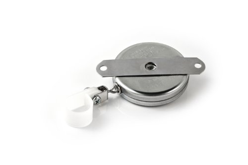 KEY-BAK Industrial Retractable Reel with 24 Inch Stainless Steel Chain, Steel Bracket Mount Back, Chrome Front, Plastic Hose Clamp/Tool Holder