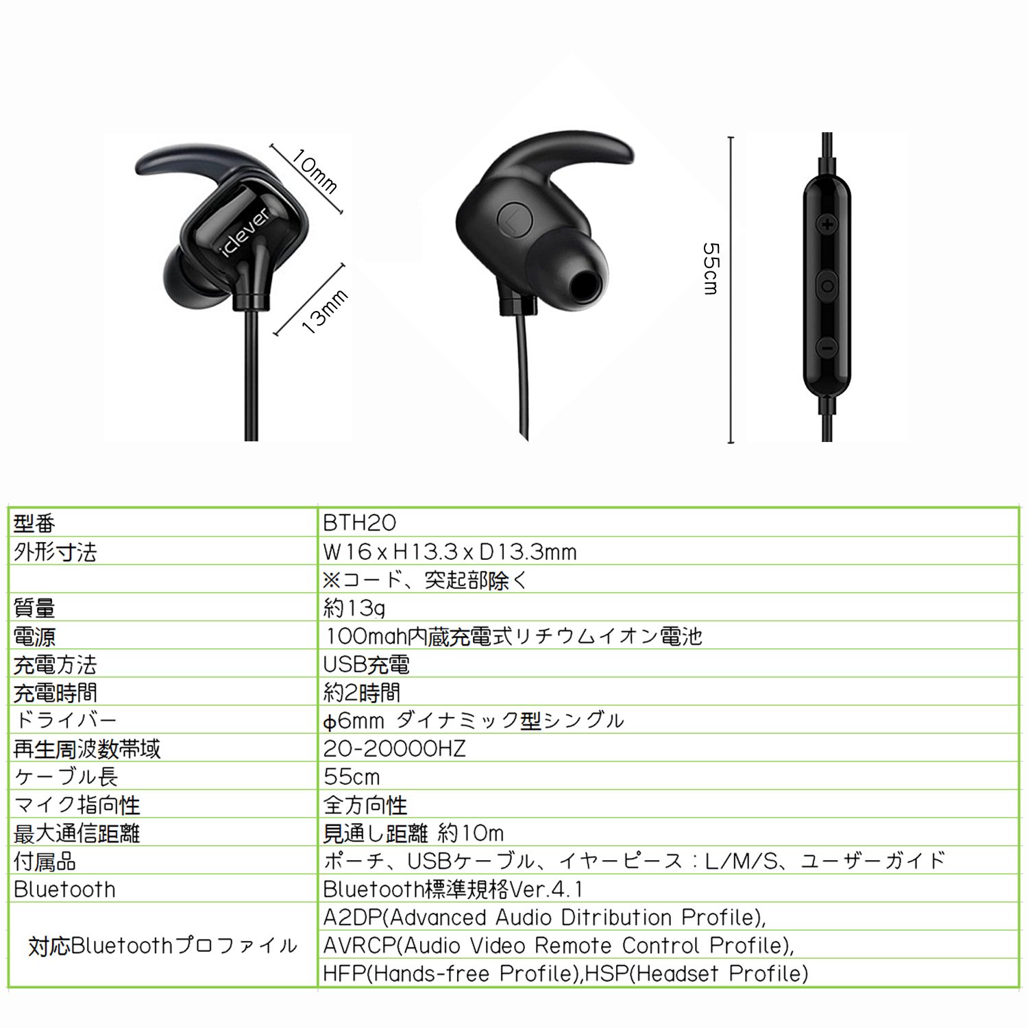 In addition, bluetooth standard ver. 4.1 is also equipped and continuous use for 8 hours is possible.