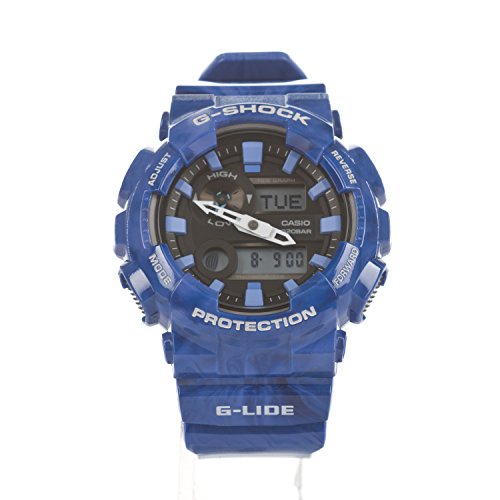 -. Binding : Watch -. Brand : Casio -. Department : Mens -. EAN : 0889232122663 -. Feature : Case, bezel, and band are resin Shock Resistant Magnetic Resistant Mineral Glass 200 Meter Water Resistant Auto LED Light w/ Afterglow in Amber World Time (29 Time Zones) 2 Multi-Function Alarms Moon Data Tide Graph Thermometer 1/100th Stopwatch Countdown Timer 5 Daily Alarms Hourly Time Signal Timer Full Auto Calendar 12/24 Hour Format Quartz Battery Movement Digital G Shock Tough Comes in Original Box, Tin Can w/ Warranty 55 x 51.2 x 16.9 mm -. Label : Casio -. Manufacturer : Casio -. MPN : GAX-100MA-2A -. PackageQuantity : 1 -. PartNumber : GAX-100MA-2A -. ProductGroup : Watch -. ProductTypeName : WATCH -. Publisher : Casio -. Studio : Casio -. Title : Casio G-Shock NEW! GAX-100MA-2A G-Lide Blue Watch -. UPC : 889232122663