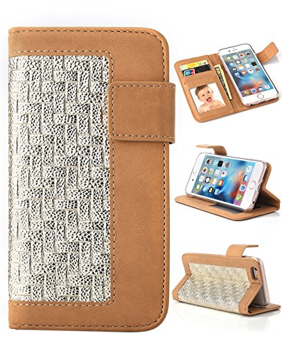 iPhone 6s Plus Wallet Case, Crosspace® Textured Flip Durable PU Leather Magnetic Holster Hemming Weave Handbag with Card Holder Stand Cover Protective Shell for Apple Iphone 6/6s Plus 5.5"-Colorful