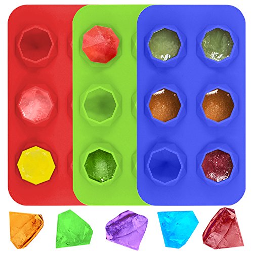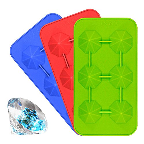 - 3 PACK SET: Three different color diamond ice molds with blue, red and green can make unique and amazing cake and drinks embellishments that look as great as they taste. Every molds can make 6 diamond ice, so you can make 15 kinds of diferent tase of ice cube at the same time. And they are won't crack or break like stiff plastic molds or trays, easy to fill, use and clean. Working life is longer, great ice mold.