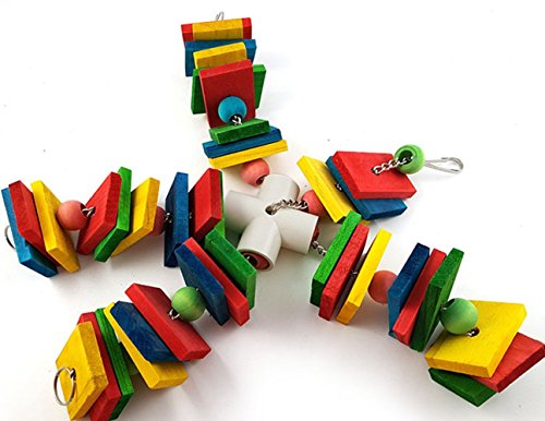 Feature: Height: 11.8 inches Suitable for medium large birds Give your bird fun and have hours of fun watching them play The big chunks of wood means your bird can have chewing fun A lovely toy designed for your little friends to chew, easy install in the cage. Made of natural wood, it is safe for bird. novel design, unique, very resistant to bite Package:1 x Parrot Chew Wood Toy 0