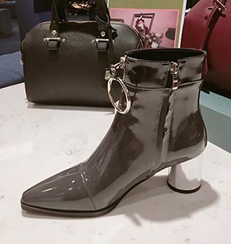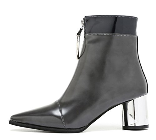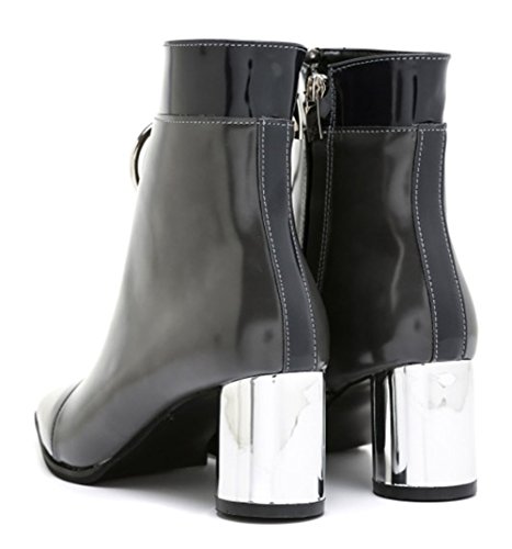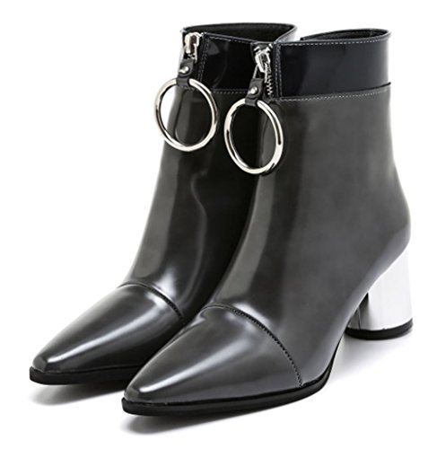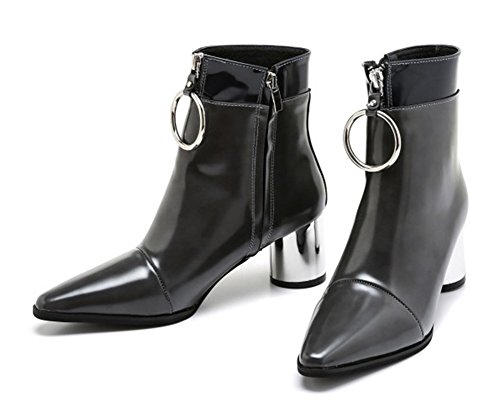 (JUST JINNY)/Women's/Boots/DIRECT FROM USA/JUST JINNY Gray Pointy Toe Ankle Boots Booties With Mid Heel and Ring For Women