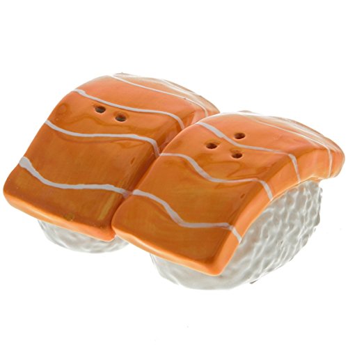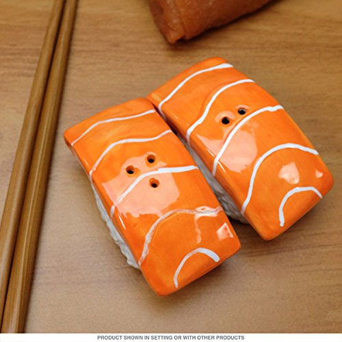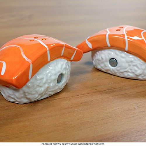 JAPANESE SALMON SUSHI CERAMIC MAGNETIC SALT PEPPER SHAKERS