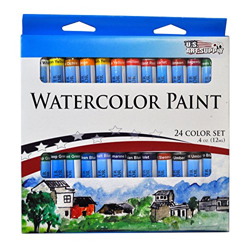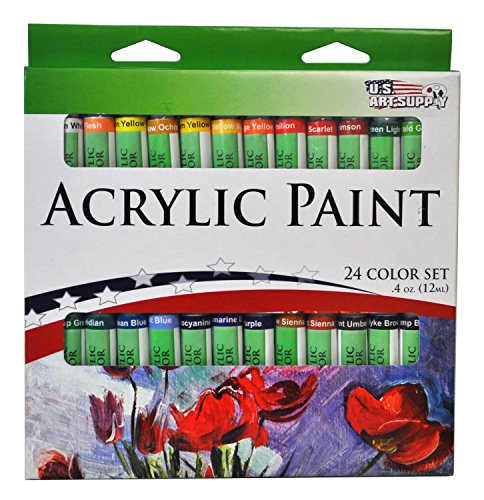 - 24- 12ml Acrylic Paint Tubes, 24-12ml Oil Paint Tubes & 24-12ml Watercolor Paint Tubes, 10-Well Plastic Palette, & 4" Color Mixing Wheel