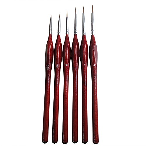 Professional Detail Paint Brush Set of 6 pcs, Miniature Brushes for Detailing & Art Painting - Acrylic, Watercolor, Oil - Models, Airplane Kits, Nail Painting