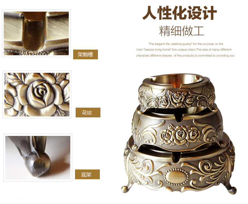 欧式复古烟灰缸个性烟缸创意礼品 家居客厅办公室实用摆件材质: 合金货号: 合金烟缸European retro ashtray personalized ashtray creative gifts home living room office practical ornamentsMaterial: AlloyItem: alloy ashtray