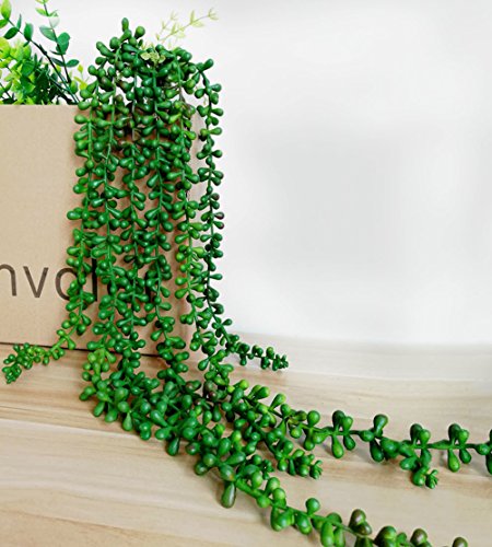 Artificial Succulent Plants, String of Pearls, 28" Hanging Basketplant, Lover Tears Plants (Green 1 pc)