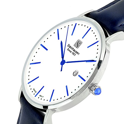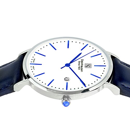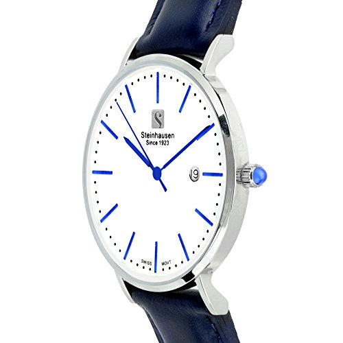Steinhausen Women's S0620 Classic Burgdorf Swiss Quartz Blue Label Stainless Steel Watch with Blue Leather Band