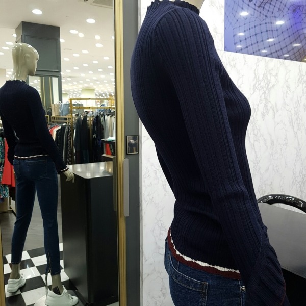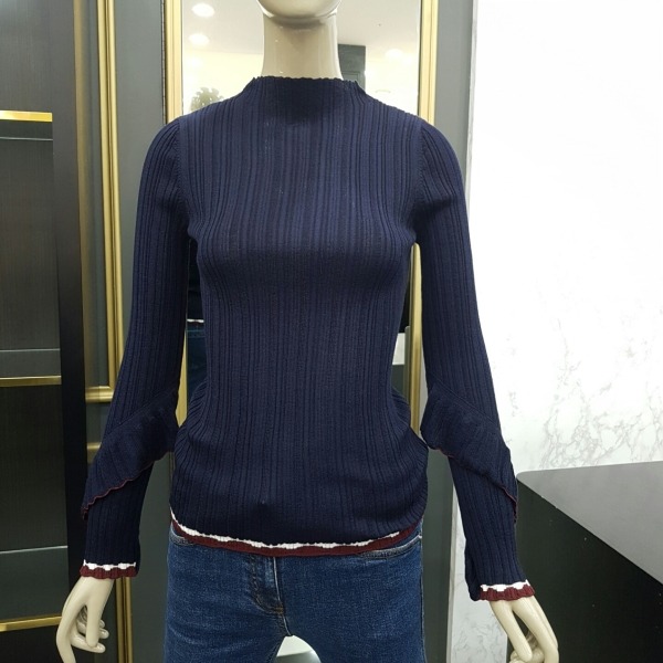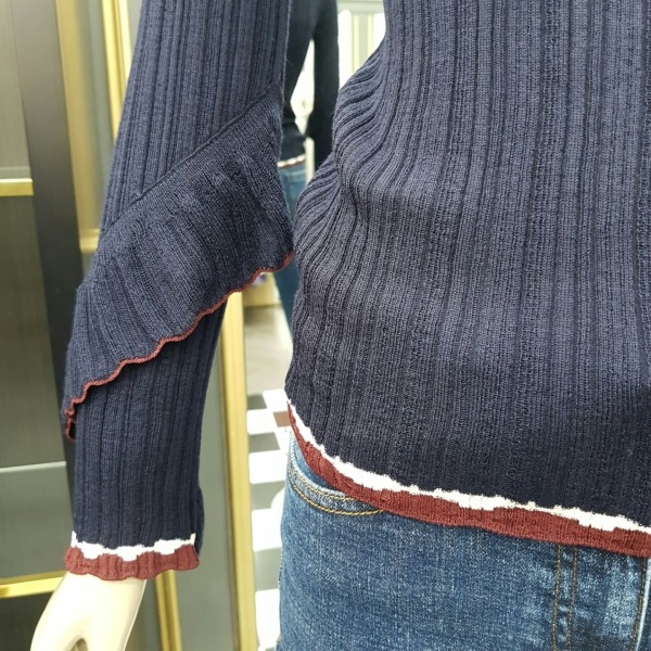 소매부분에 프릴장식이 포인트된 하이넥 풀오버입니다