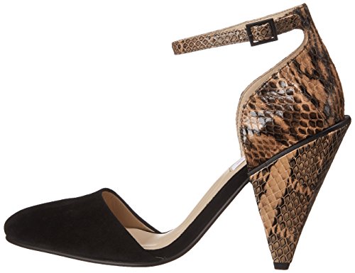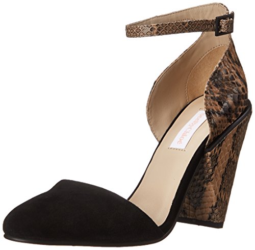 Ankle strap with adjustable buckle closure. Covered round toe. Synthetic lining. Lightly padded insole. Wrapped heel. Textured synthetic sole. Imported.