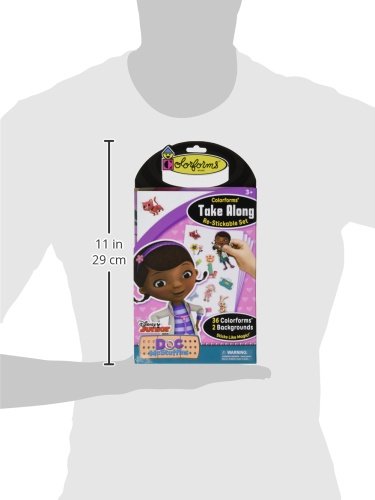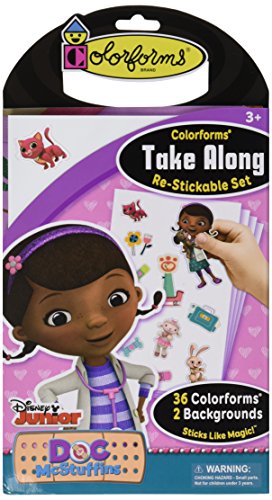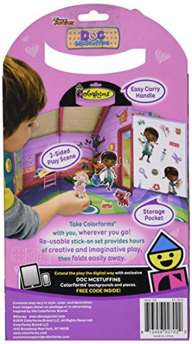 Doc McStuffins self-contained pack includes 2 colorful backgrounds and 36 Colorforms pieces