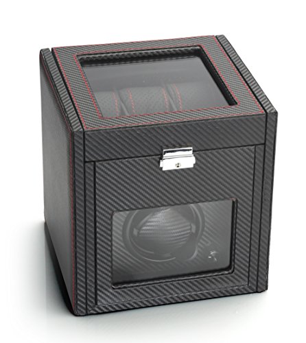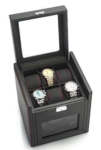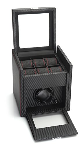 -. Feature : Lockable Carbon Fiber Pattern Single Winder with Additional Storage for 6 Watches / 4 Pre-Programmed Timer Settings: 650, 900, 1350 and 1800TPD. Features 3 Directional Settings: Clockwise, Counter-Clockwise, Bi-Directional / P.R.Imary Material: Leather Synthetic / P.R.Imary Color: Carbon Fiber/black/red