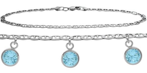 -. Title : Genuine Sterling Silver Mariner Anklet with Genuine 2.55 Carat Blue Topaz Round Charms