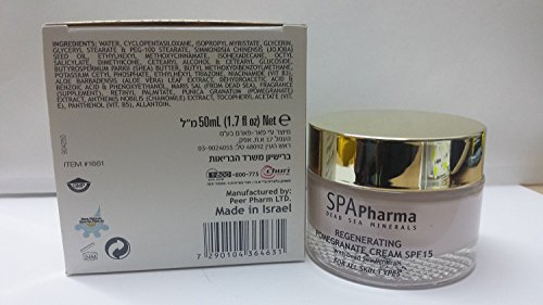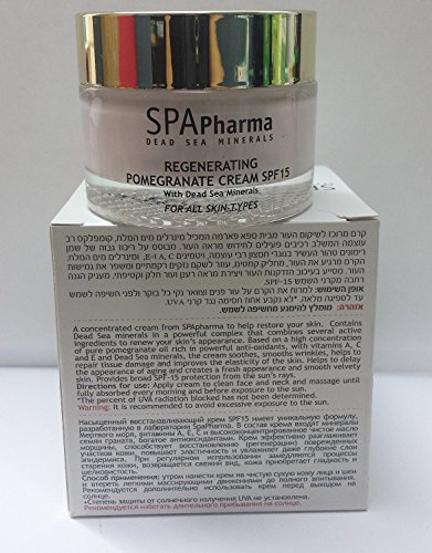 Spapharma Dead Sea - Regenerating Pomegrante Cream Spf 15 for All Skin Types - With Ingridients From the Dead Sea - 50ml - Pure Natural Dead Sea Minerals