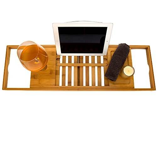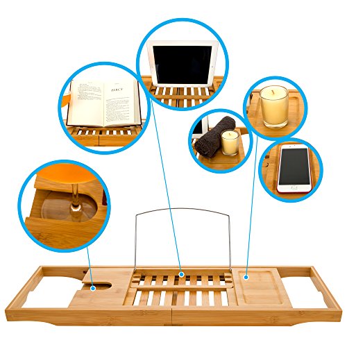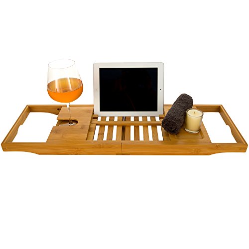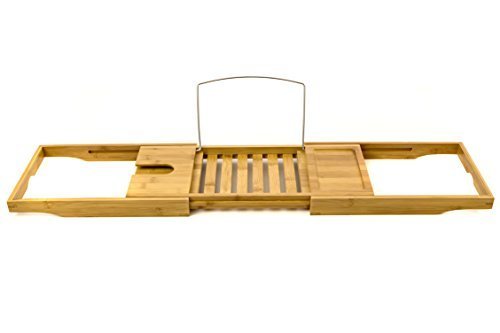 Bathtub Tray Made, Bathtub Caddy Shower Bath Tub Reading Tray Organizer with Extending Slides, Holds Book / Wine / Phone Holder Made out Organic Bamboo by Intriom Bamboo collection