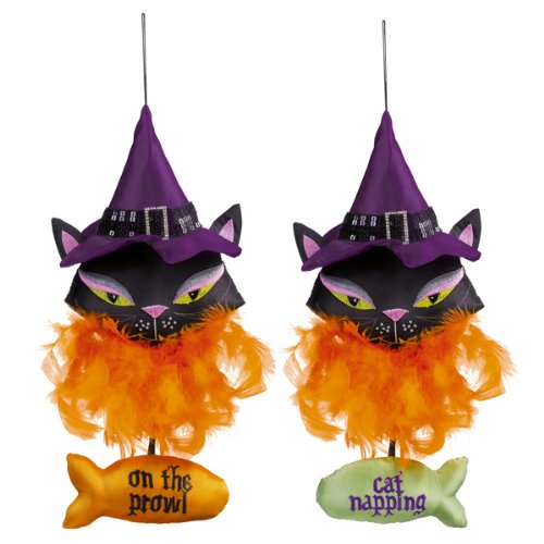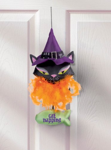 Grasslands Road Pretty Wicked "On the Prowl" Black Witch Cat Door Hanger