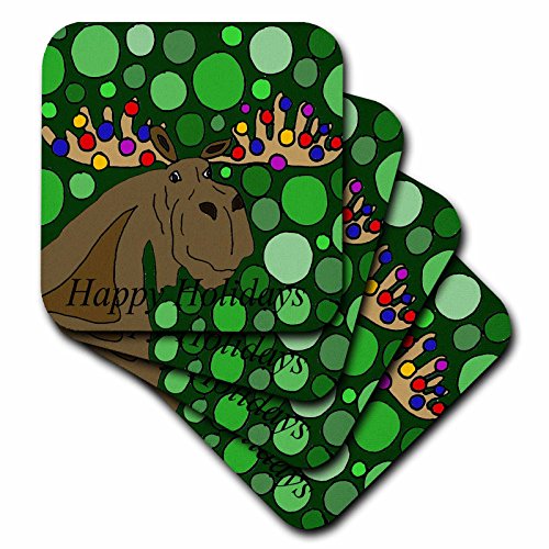 3dRose cst_201769_1 Fun Moose with Christmas Lights Christmas Abstract Soft Coasters, (Set of 4)