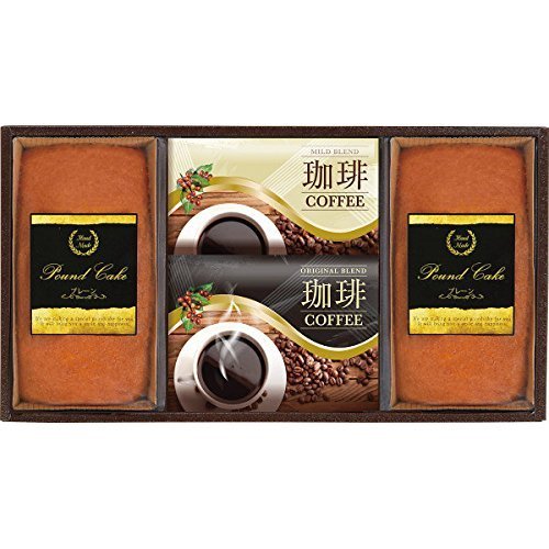 原材料:ドリップコーヒーマイルドブレンド(7g×2袋)・ドリップコーヒーオリジナルブレンド(7g×2袋)×各1、パウンドケーキ(プレーン)×2