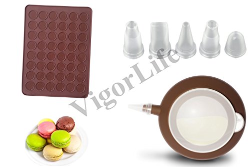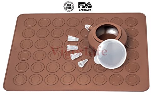 Vigorlife Macaron Making Set- 48 Capacity Macaron Silicone Baking Mats Non stick Cakes Mould Trays Bakeware and Decorating Pen Icing Tips with 4 Nozzles