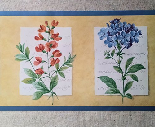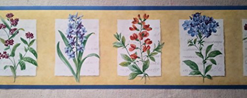 -. Feature : 15 Foot Long Spools - Prepasted Wallpaper Border / Pattern: KT003103B - Light Blue/Yellow / 7 Inches Wide / Flowers Wallpaper Border / Bathroom Wallpaper Border