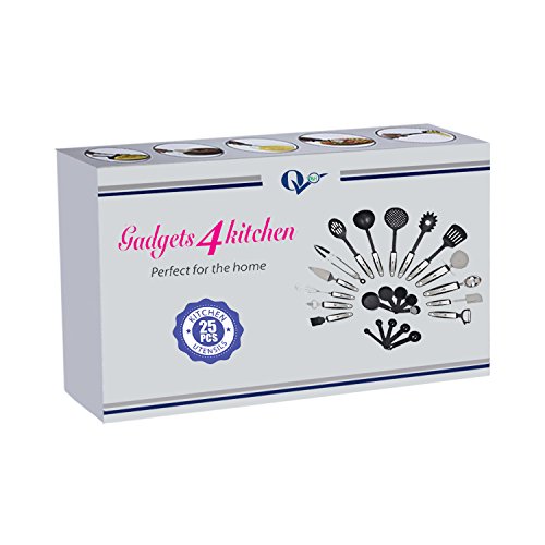 - PREMIUM QUALITY 25 PIECE KITCHEN UTENSILS SET – Are you looking for an all-inclusive Kitchen Utensil Set that looks MAJESTIC, has everything and is still economical? Do you want to make your friends and family feel jealous? Looking for the perfect Housewarming gift ? We give you all that with our Exclusive Kitchenware set that is sure to make you happy while cooking.