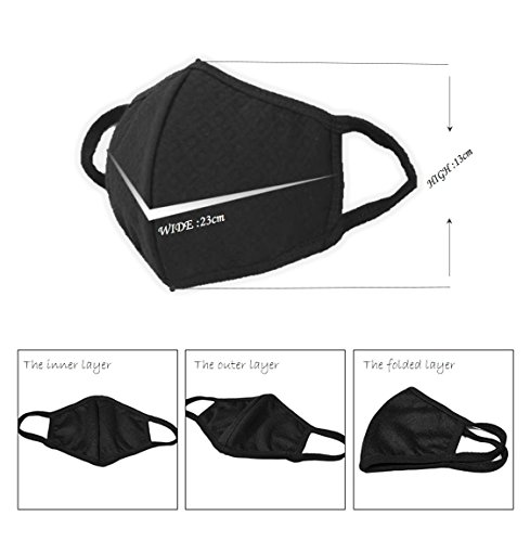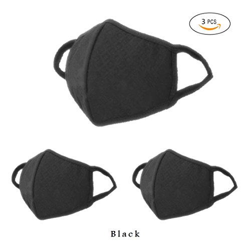 3-Pack Black PM 2.5 Cotton Face Mouth Mask Muffle with Fliter Respirator Comfy Reuseable Dustproof Antibacterial Mouth Cover Warm Windproof Face Protective Guaze Mask