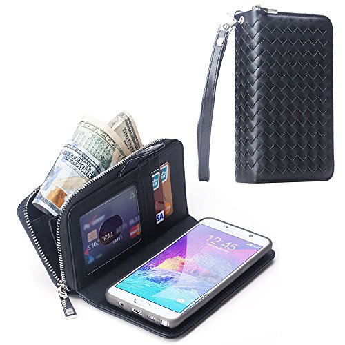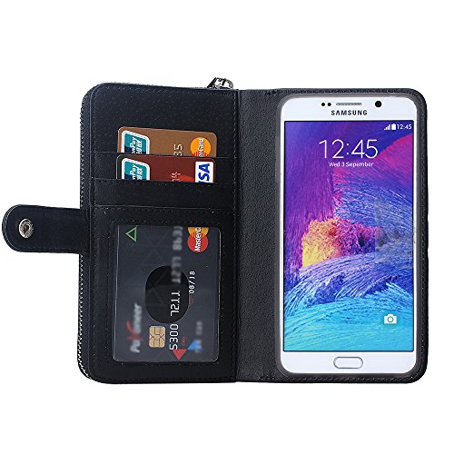 Galaxy Note 5 Case, HESPLUS Premium PU leather Flip Detachable Zipper Wallet Case with Credit Card Slot Holder and Hand Grip for Samsung Galaxy Note 5 (Black)