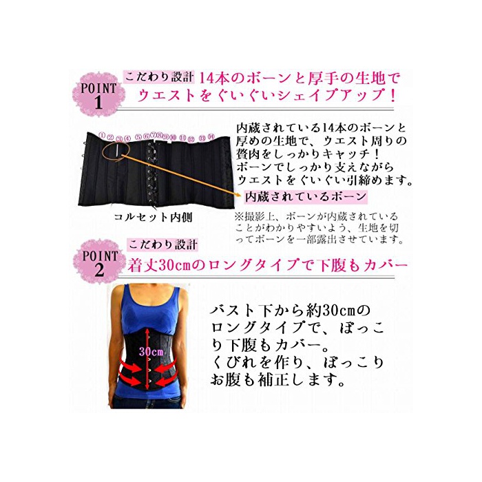 원본상품명: ヴィヴィラウンジ コルセット くびれ ダイエット 補正下着 編み上げ アンダバスト 刺入り 矯正 Tショツ 着用ガイド付
