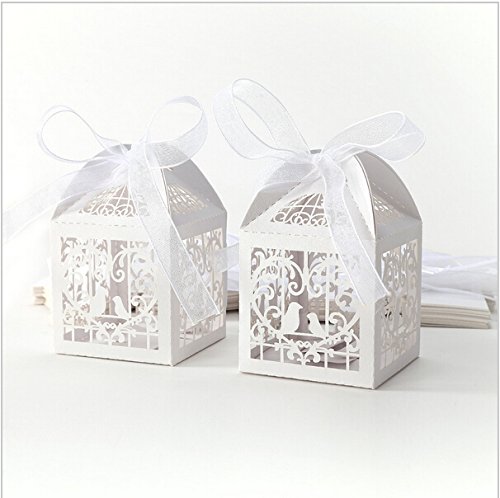 -. Title : Saitec ® 50 Pack White Love Birds Laser Cut Favor Candy Box Bomboniere with Ribbons Bridal Shower Wedding Party Favors/ Love Heart and bird Laser Cut Candy Gift Boxes With Ribbon Wedding Party Favor Creative Favor Bags/ Laser Cut birds Wedding Favor Box Birthday Shower Party Candy Boxes Bomboniere