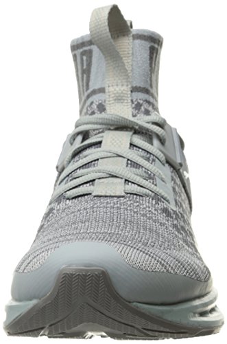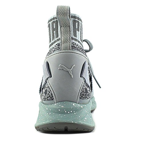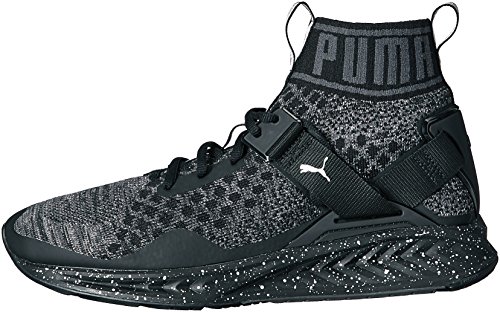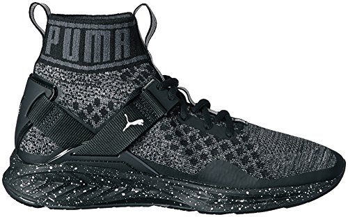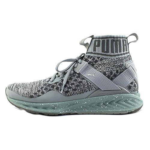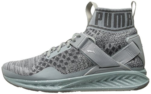 Studio : PUMA Publisher : PUMA Binding : Shoes Product Description Ignite evoknit metal wn’s provides a knitted upper for form fitting comfort and bold collar heights for a fresh look. All new knitted construction is equipped with three colors including a metallic thread for a unique design. Tpu heel and mid-foot pieces are attached with a strap to support the foot. Ignite 3 tooling with a metallic speckle offers enhanced energy return, and a faster chevron design delivering a premium look and smooth ride. 0
