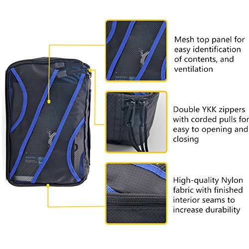 This packing cubes set with small, medium and large sizes, make sure all your personal care belongings in a convenient place. It's like a glove into most airline carry-on suitcases, tote, weekender, backpacks and duffel bags. Ideal for active lifestyles for family breaks, business travel, backpacking, camping, hiking etc.