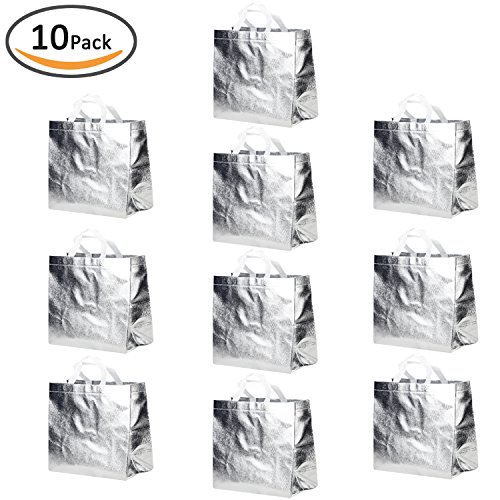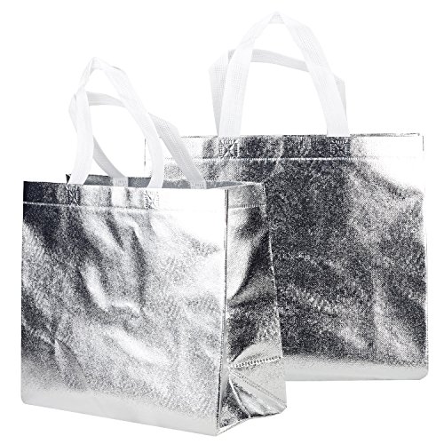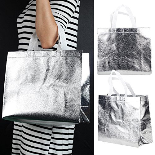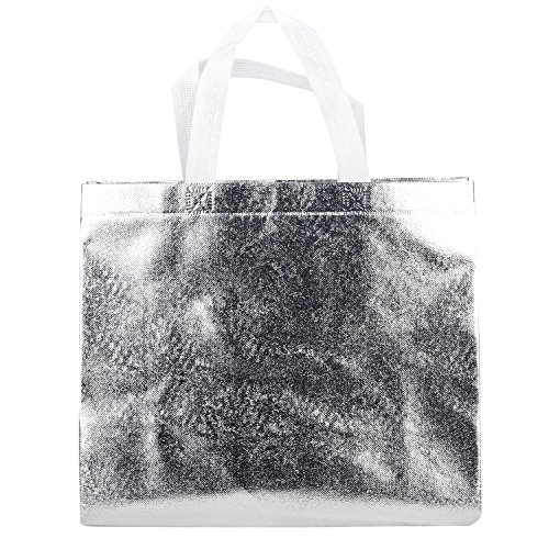 Rumcent Glossy Glitter Durable Reusable Grocery Bag Tote Bag Handles Bag,Medium Non-woven Fashionable Present Bag Gift Bag,Goodies Bag Shopping Bag,Promotional Bag,Totes,Bulk Bags Set Of 10 - Silver